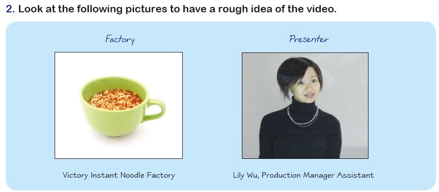 Viewing: Watch the video. As you watch, please pay attention to the producing process. The following are different stages of the instant noodle producing process. Rearrange them in the correct order.