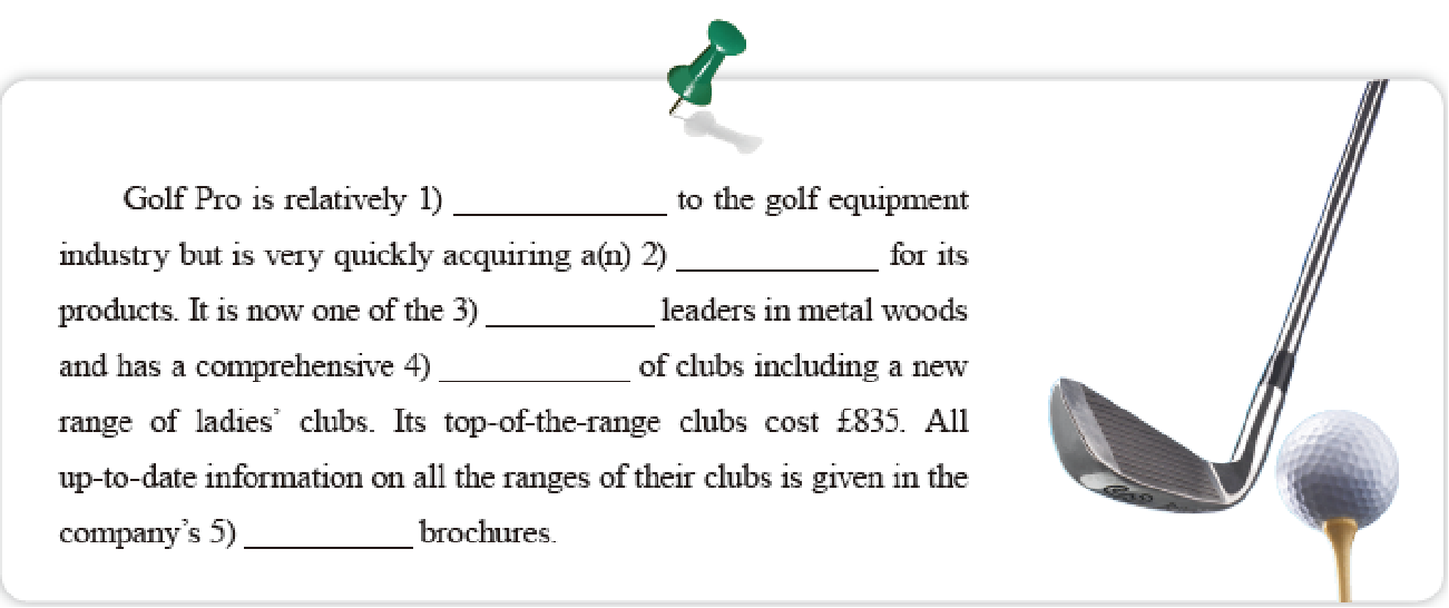 Listen to a dialogue between a sales representative of Golf Pro, a golf manufacturing company, and a potential customer at an international golf fair. Fill in the blanks with what you hear.