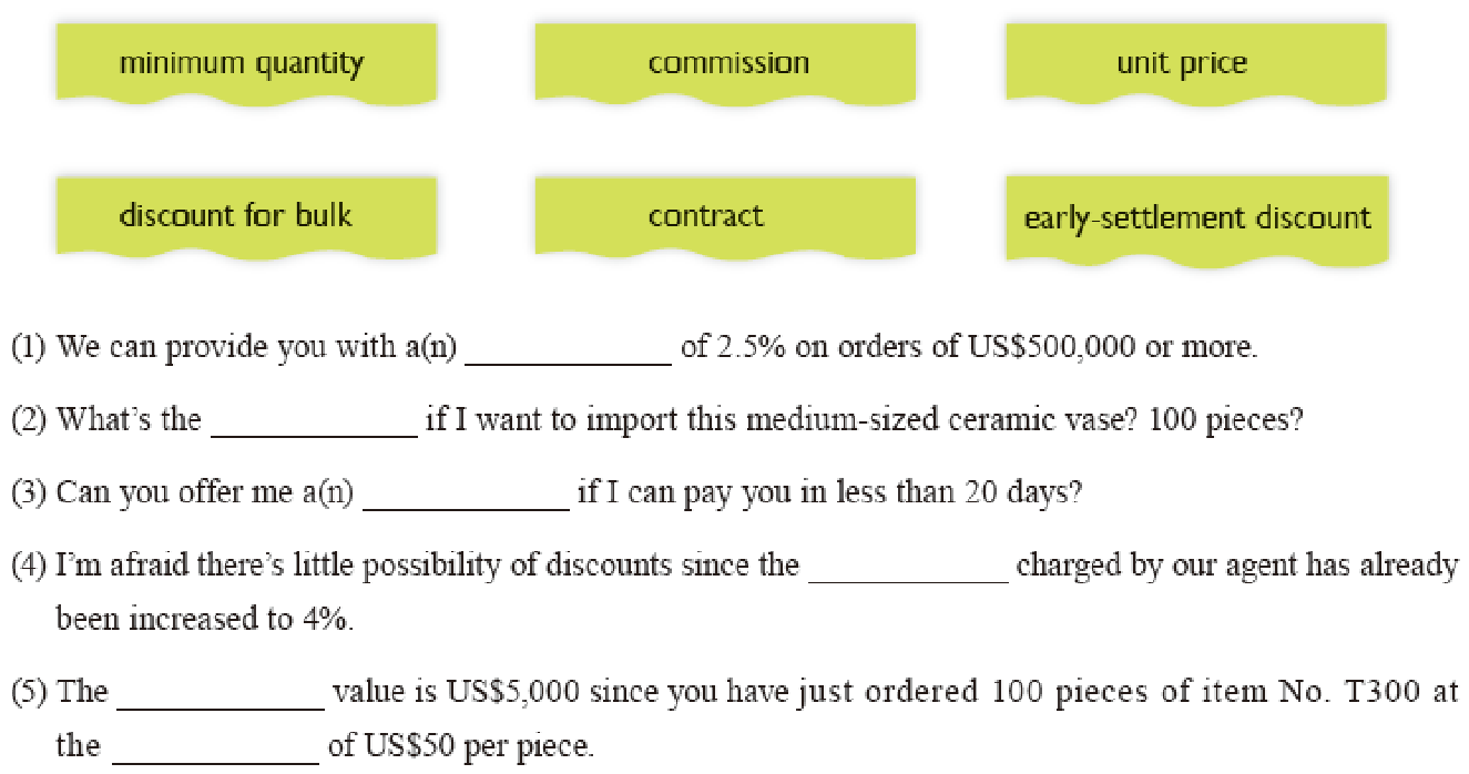 Nick Donald is the manager of a clothes manufacturing company. He is talking about their regulations on giving discounts and commission. Listen to the conversation and then decide if the following statements are true (T) or false (F).
