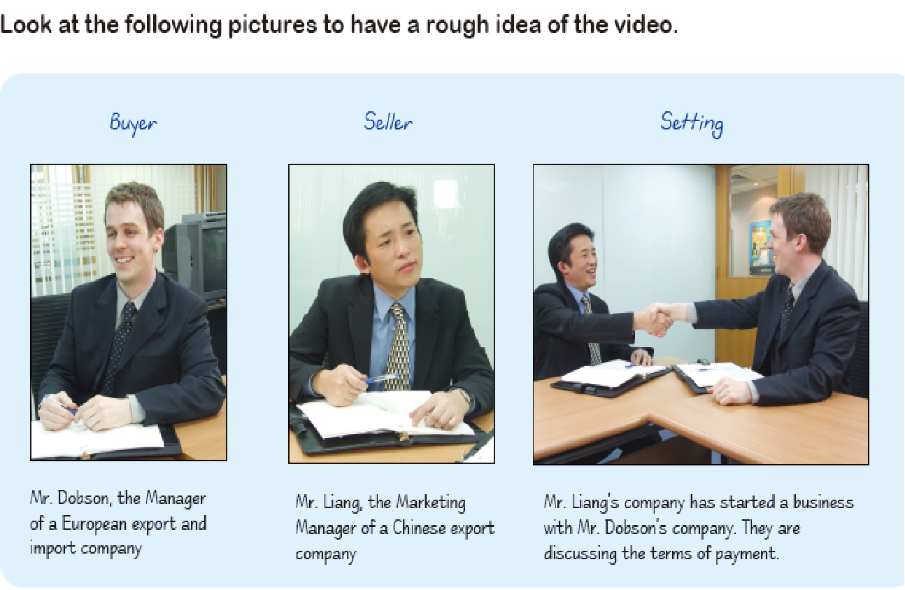 Mr. Dobson: I appreciate your cooperation. I can envisage a sustainable and long-term relationship ahead. We can promise there'll be no problem with the payment. But I hope you can offer us more favourable conditions for later transactions.