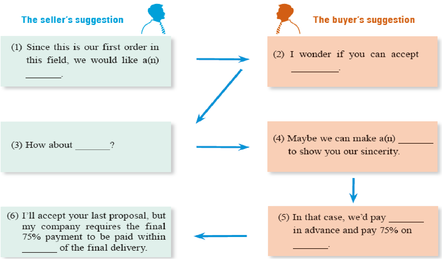 2. Watch the video again. Pay attention to the terms of payment proposed by the buyer and the seller respectively, and their responses to each other. Then fill in the blanks.