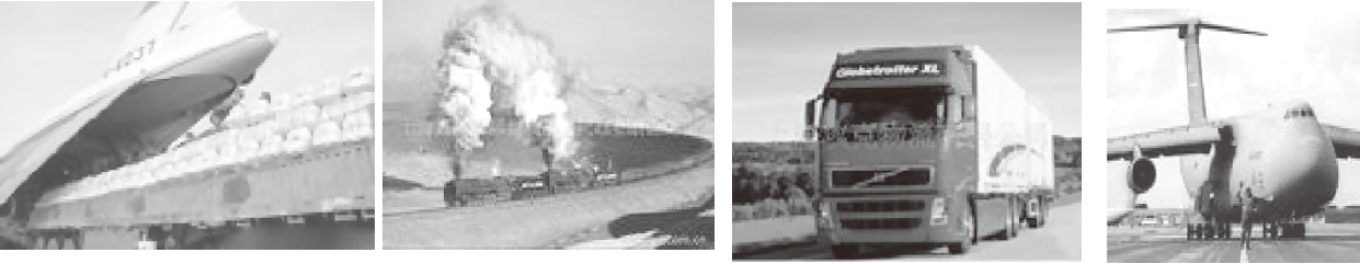 Ocean transport, air transport, rail and road transport, multimodal transport, etc.