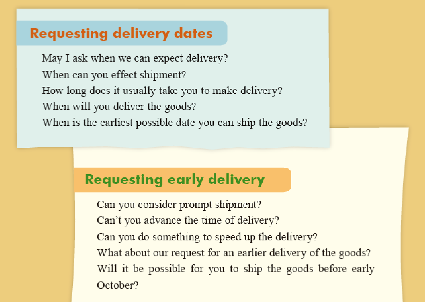 Language Focus A Discussing delivery time