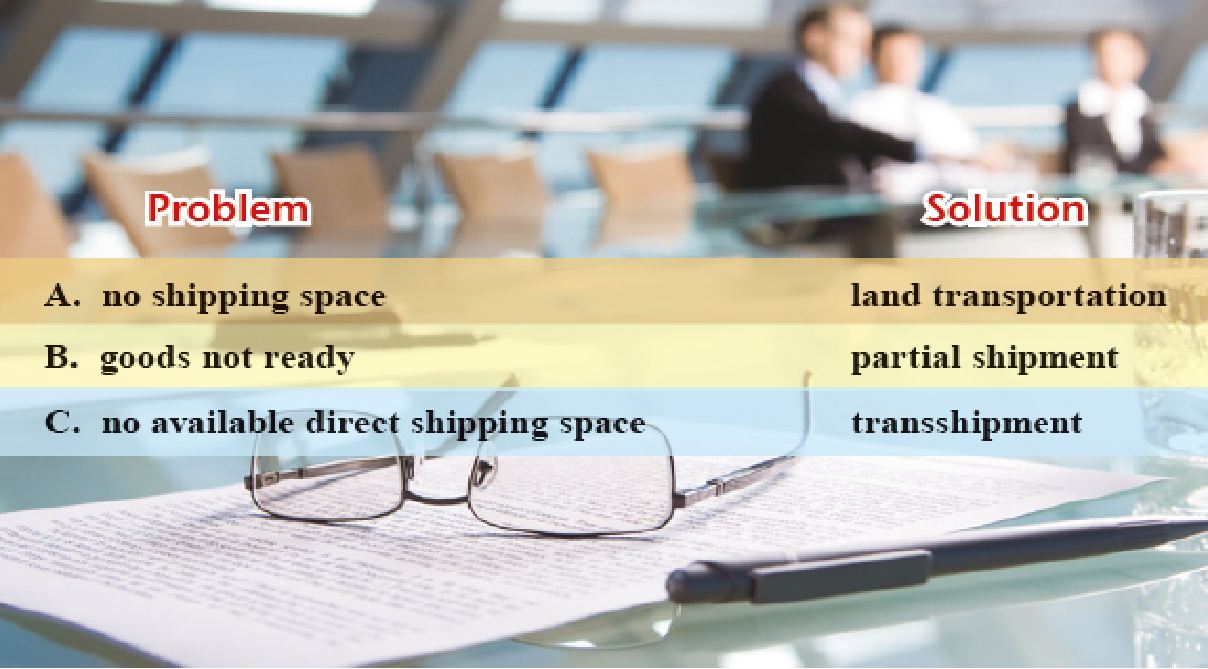 2. Below are some problems associated with bringing forward the date of shipment and the possible solutions to the problems. Listen to the conversation and identify the problems discussed in the conversation.