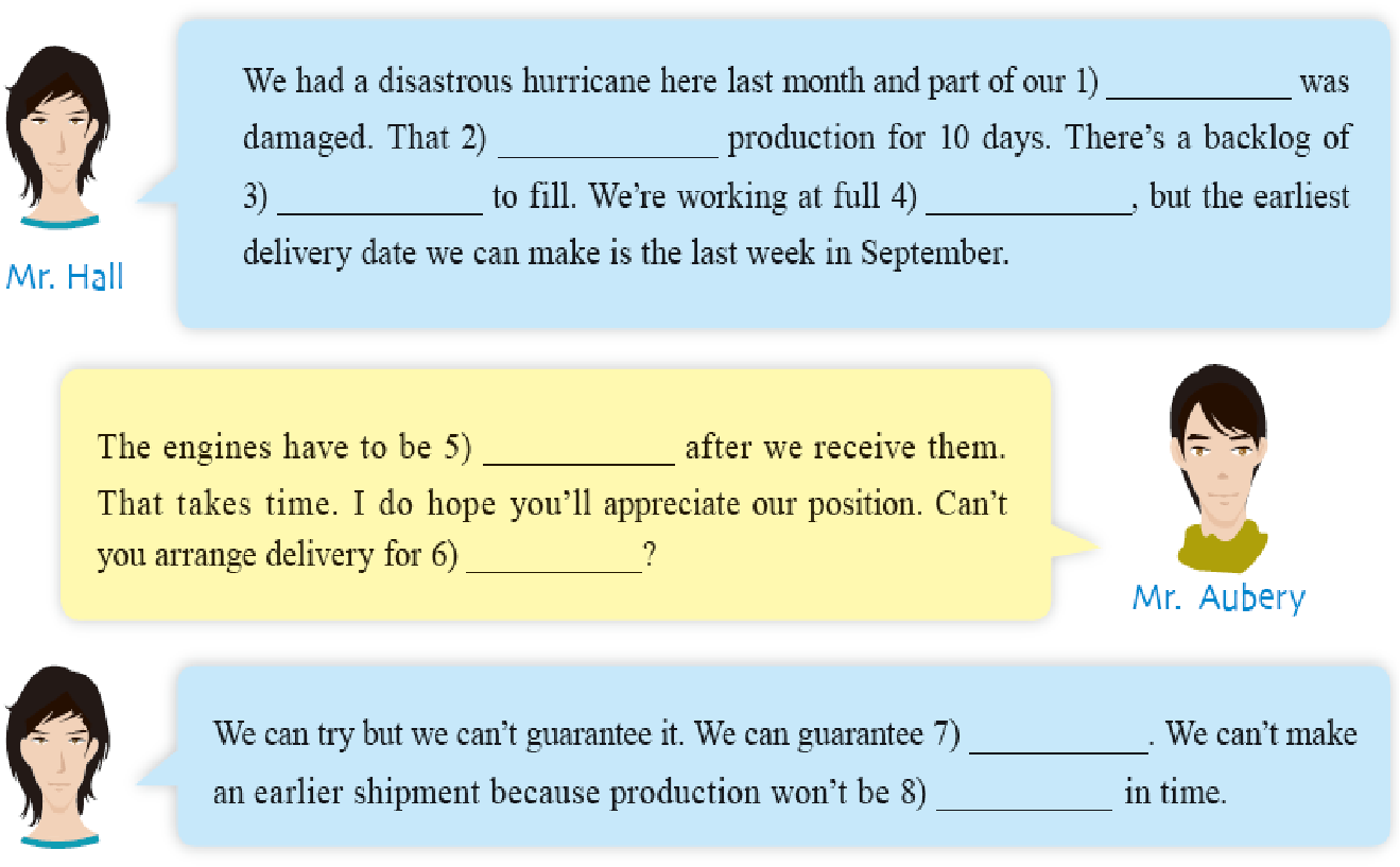 Mr. Hall: As you know, we had a disastrous hurricane here last month and part of our workshop was damaged. That halted production for 10 days.