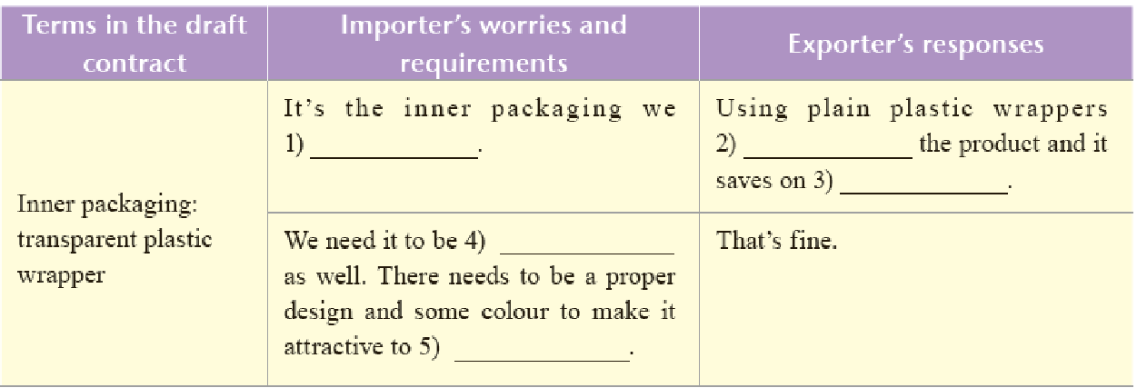 Task:Watch the video. Pay attention to the modifications the importer wants to make as well as the response of the exporter, and fill in the blanks.