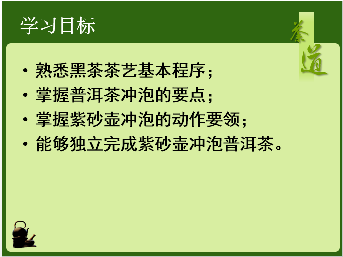 1备器迎客 2倾茶入荷 3鉴赏佳茗 4温壶烫盏 5普洱入宫 6润茶洗尘 7游龙戏水 8淋壶增温 9出汤入壶 10普降甘霖