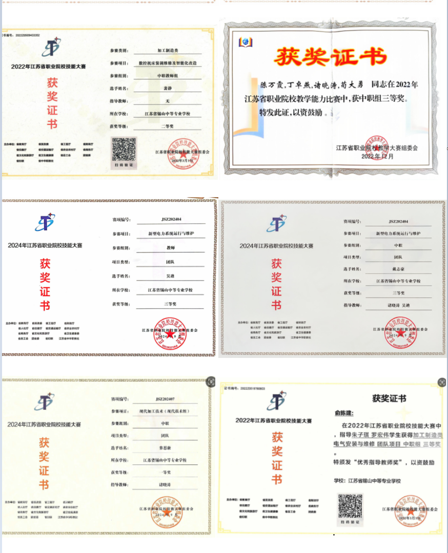 1 | 2024 | 须子珈, 周信宇, 陶中润中职市赛现代加工技术(现代技术)一等奖 | 市级 | 无锡市教育局 |