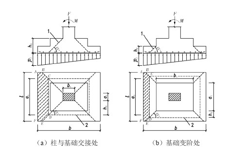 1)对柱下独立基础,当冲切破坏锥体落在基础底面以内时,应验算柱与基础交接处以及基础变阶处的受冲切承载力。