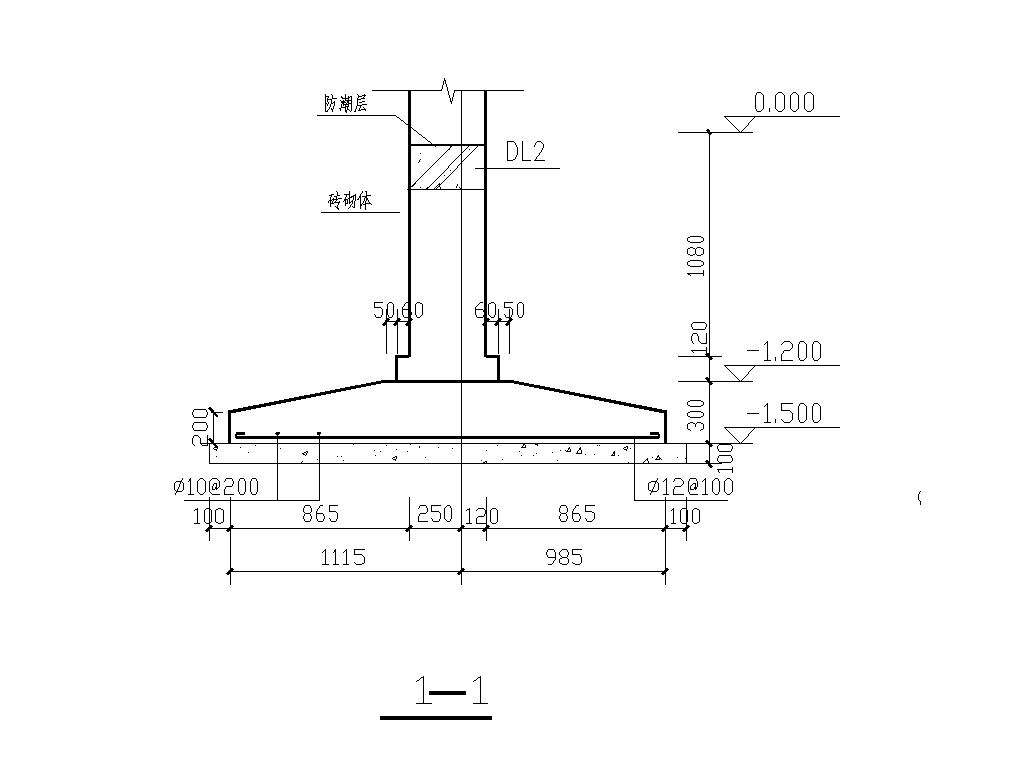 墙下钢筋混凝土条形基础的截面设计主要包括基础高度和基础底板配筋。计算时,可不考虑基础及其上覆土的重力,仅由基础顶面的荷载所产生的地基净反力pj作用,并沿墙长度方向取1m作为计算单元。设计计算时应符合下列规定: