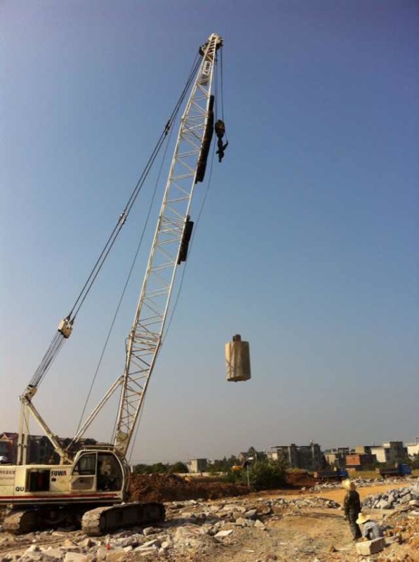 用几吨至几十吨的重锤从高处落下(十几米至几十米),反复多次夯击地面,对地基进行强力夯实。与重锤夯实不同,通过强大的夯击力在地基中产生动应力和振动波,从夯击点发出纵波和横波,向地基纵深方向传播,使地基浅层和深处产生不同程度的加固作用。