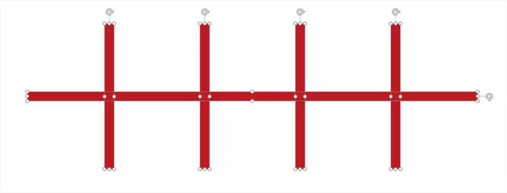 可以另外插入等宽的矩形条作为参照物,同时利用好对齐工具就可以了。