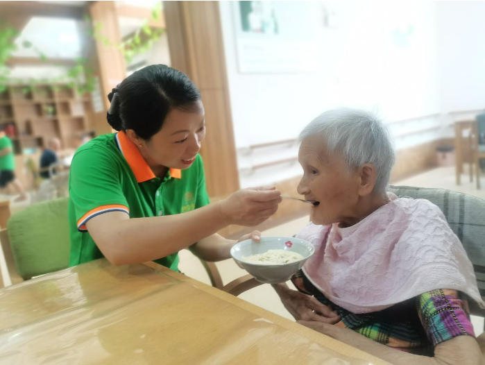 赵奶奶原本食欲很好,但一次回家住的时候,一场普通肺炎让赵奶奶变成了一位“厌食症”长者。重返易俗河梅林敬老院之后,她几乎滴米不进。怎么办?看着日渐消瘦的赵奶奶,陈望满等护理员心疼坏了。为了让赵奶奶能吃进东西,她们绞尽脑汁、费尽心思,协助厨房每天为她设计不同口味的菜品,将饭菜尽可能做得软烂可口,还在颜色和形状上下足功夫,只求让赵奶奶看到、闻到、尝到时,愿意多吃一口。