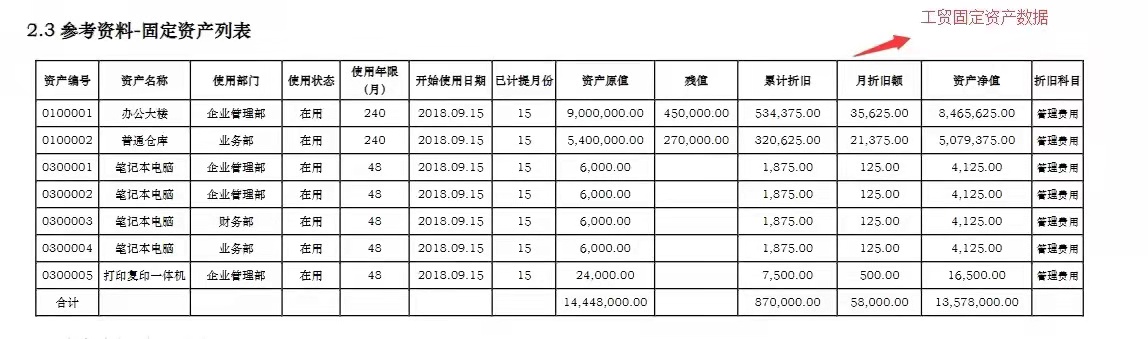 工贸期初建账固定资产数据: