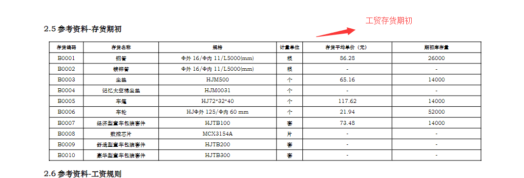 工贸期初建账库存数据: