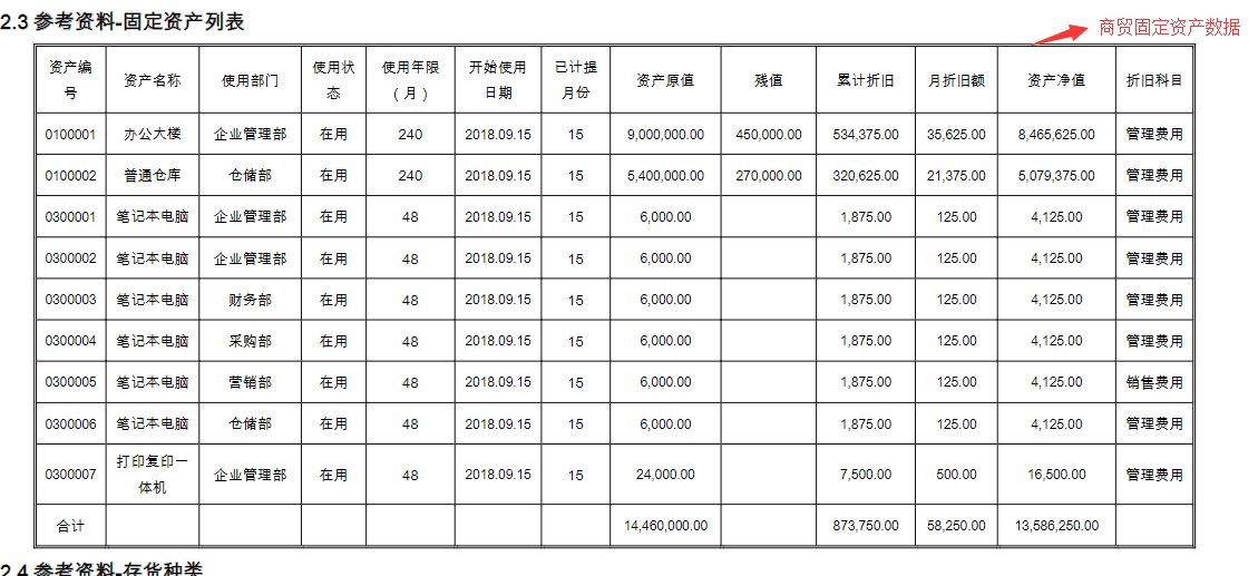 商贸期初建账固定资产数据: