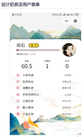 茶颜悦色的线上商城需要设计表单,“登陆表单”和“用户表单”