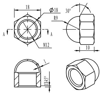 3.完成如图3-4-3所示圆头螺母的三维建模。