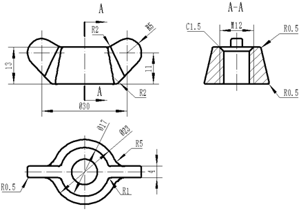 4.完成如图3-4-4所示蝶形螺母的三维建模。