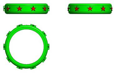 3.完成如图3所示零件的三维建模,并以绿色带边着色显示三维模型,五角星顶面为红色。提示:建模时注意其中的长方体薄板尺寸为200*20*2、五角星在以边长为5的正五边形为参考,请问环形折弯模型的周长是多少?