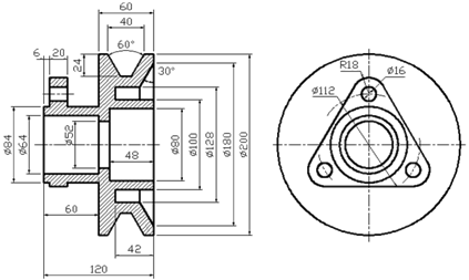 5.完成如图5所示工程图对应的三维模型建模,建模完成后请回答模型的体积。