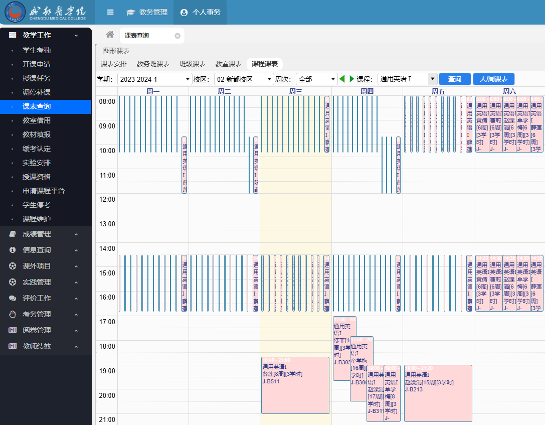 开课时间教务管理系统截图