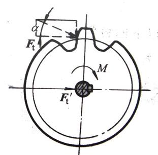 力的平移定理揭示了力可以转换为同平面内的一个力和力偶。反之,同平面的一个力和力偶也可以合成为一个力。这不但是力系简化的理论基础,同时对分析和解决工程力学及日常生活中一些实际的力学问题也具有指导意义。例如,如图2-71所示,一对齿轮啮合传动,作用在轮齿上的力Ft可以使齿轮转动,这是因为作用于轮齿上的力不通过齿轮的回转中心,将力向齿轮中心平移,会得到一个作用于轴心的力及一个附加力偶M ,M使齿轮转动。