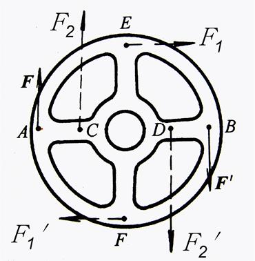 如图2-72所示的方向盘,只要保持力偶矩大小不变,加在A、B两点的力偶(F,F′)可以移到C、D点或E、F点。