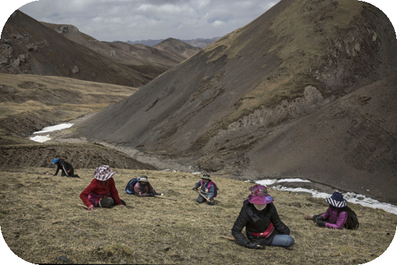 中药材是中医学临床的物质基础,其中大部分来源于植物,一些地区的药用植物被掠夺式采挖及环境的污染,常用品种的资源日益减少,许多种类甚至濒临灭绝。因此,人工栽培的药材需求量日益增长,满足需求最根本的解决办法就是发展药用资源的种养业。如下图的藏区的采虫草大军和过度摘采肉苁蓉。