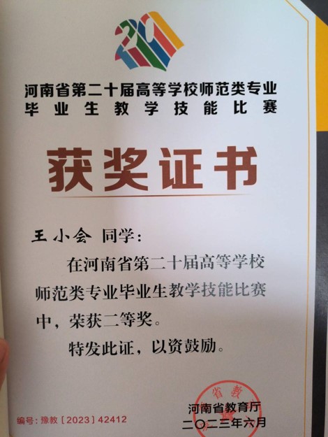 | 1 | 王小会 | 二等奖 | 省级 |