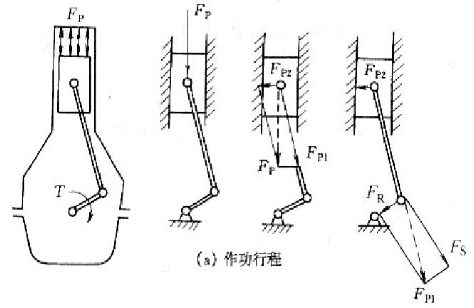 作用在曲柄连杆机构上的力有气体力、运动质量惯性力和摩擦力。
