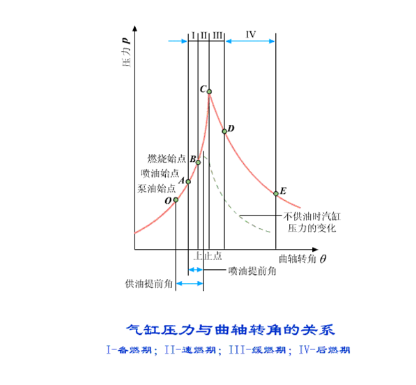 柴油机可燃混合气的形成和燃烧都是直接在燃烧室内进行的。在接近压缩行程终点时,柴油喷入汽缸内,柴油油滴在炙热的空气中受热、蒸发、扩散,并与空气混合形成可燃混合气,最终自行发火燃烧,边喷射,边燃烧。其混合气的形成和燃烧特点是: