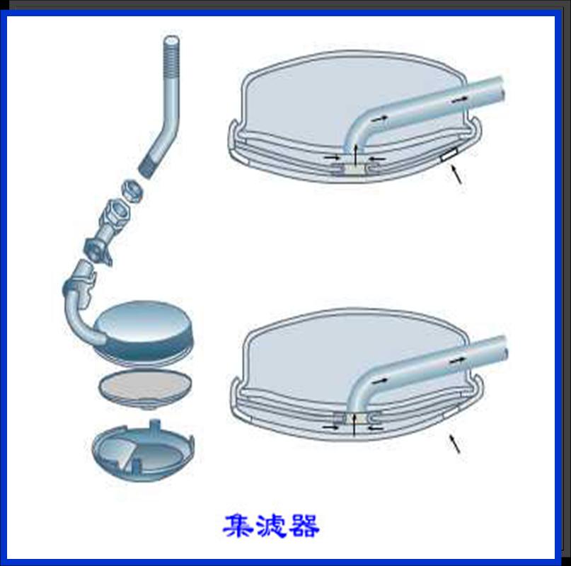一般润滑系中装有几个不同滤清能力的滤清器,集滤器、粗滤器和细滤器。