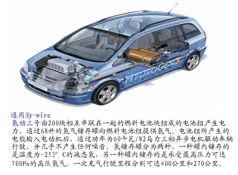 下面分别介绍以氢为燃料和以甲醇为燃料的燃料电池发动机系统。并介绍通用的一款用氢气作为燃料的燃料电池电动汽车。