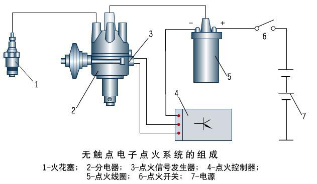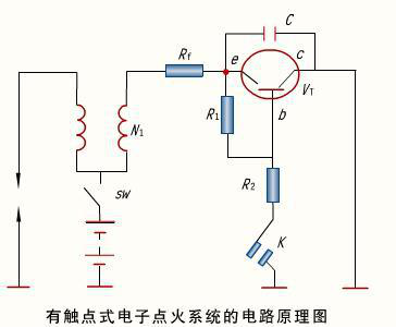 目前国内外汽车上使用的电子点火系统主要分为有触点的电子点火系统和无触点的电子点火系统两大类。无论是哪一类电子点火系统,都是利用电子元件(晶体三极管)作为开关来接通或断开点火系统的初级电路,通过点火线圈来产生高压电。