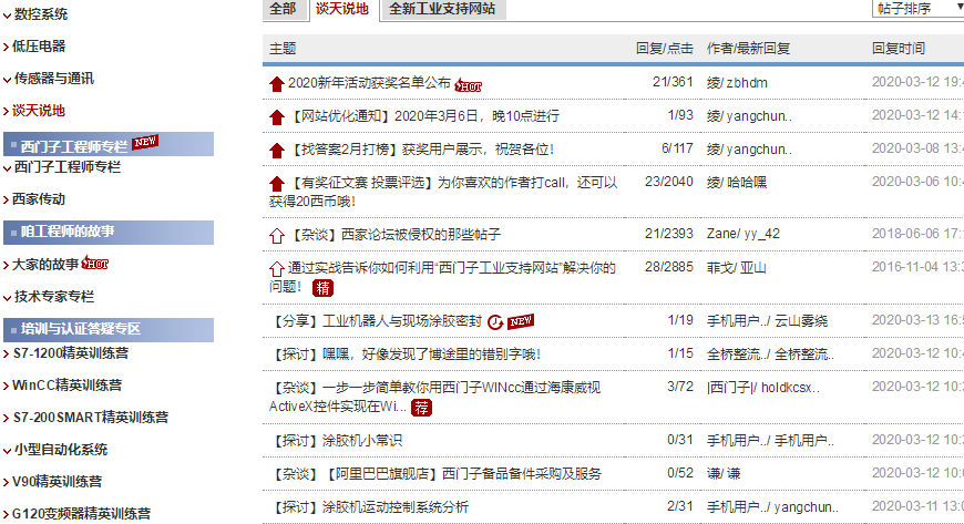 这个网站是西门子公司的官方网站,技术资料丰富,论坛的人也很多,有什么问题发布上去一般几分钟就有人回复了,可以注册个账号,每天登陆有西币用来提问。