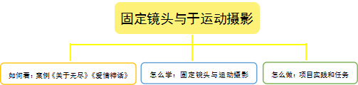 1.能够掌握固定镜头的拍摄方法, 并与叙事相结合;
