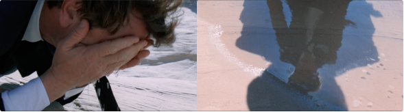 而从影片的00:17:33开始,成年杰克也走入了自然的环境之中。这种瞬间的空间转移,会让观众在叙事上有模糊不清的感受。这也是《生命之树》会让人看不懂的原因。但通过蒙太奇的概念来分析,则能够发现该处使用的是隐喻蒙太奇,以超现实的场景去构造人物的心路历程,暗示他正在经受生命的洗礼,寻找其本质的真相。
