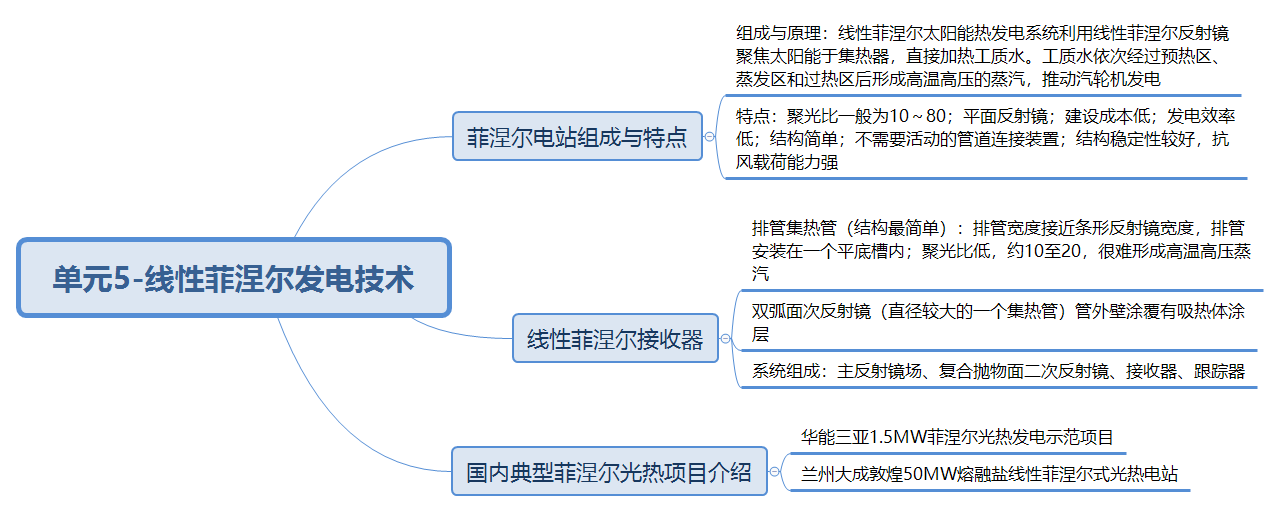 1. 掌握线性菲涅尔光热发电系统的组成、特点、关键设备;