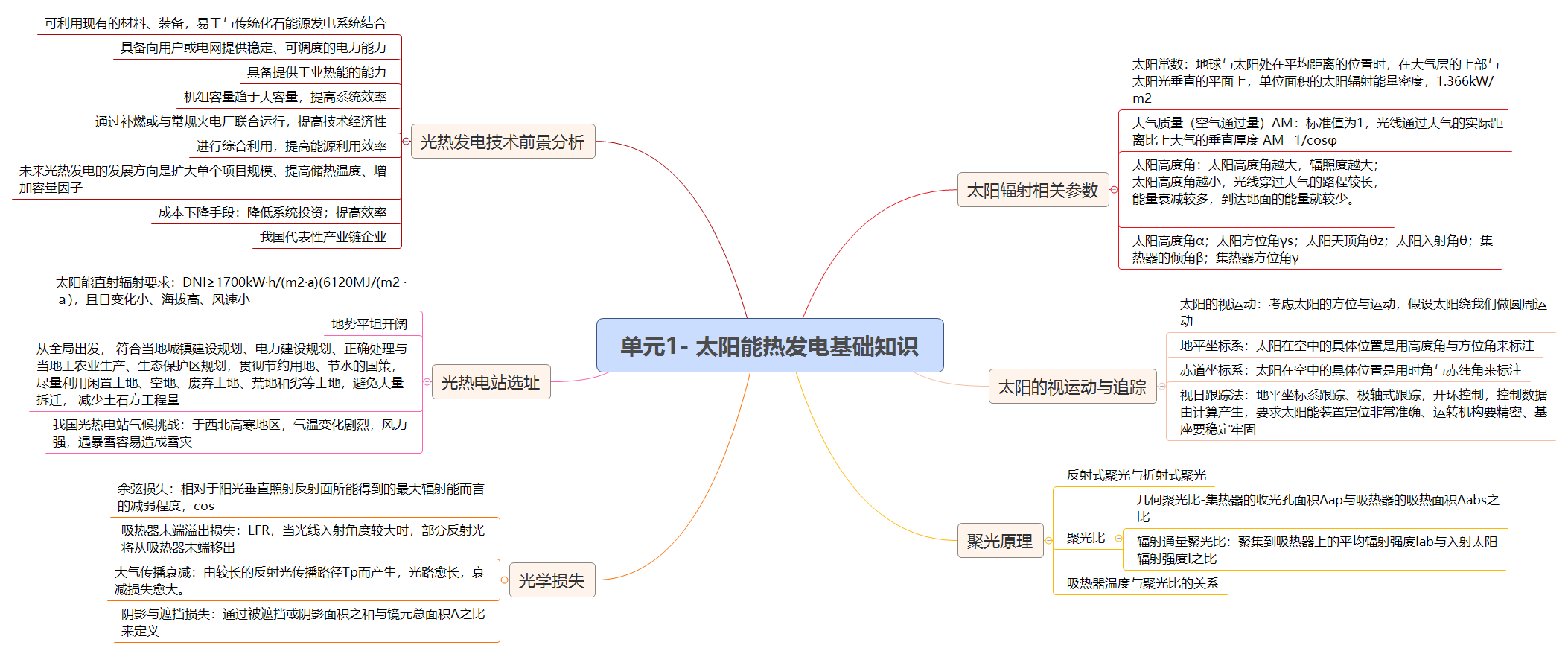 2. 掌握与太阳能光热发电相关的参数:太阳高度、太阳常数、大气质量、太阳方位角、集热器方位角等;