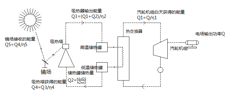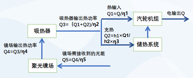 基于能量守恒定律,按照电到热,再到光的逆向思维计算定日镜面积。