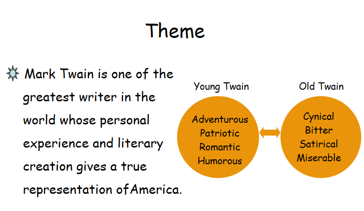 This part serves as a general introduction to the passage, through which the reader will get a glimpse of Mark Twain, who was not only adventurous, patriotic, romantic, and humorous, but also cynical, bitter and unhappy.