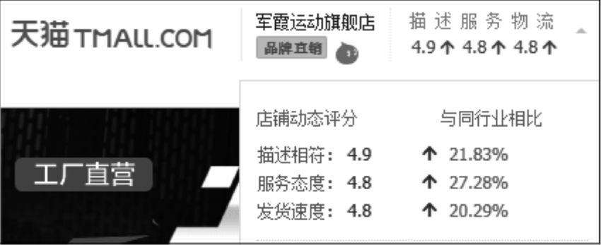 店铺动态评分(DSR):商品描述相符、服务态度、发货速度三项评分