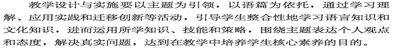 核心素养是课程育人价值的集中体现,是学生通过课程学习逐步形成的适应个人终身发展和社会发展需要的正确价值观、必备品格和关键能力。包括语言能力、文化意识、思维品质和学习能力四个方面。