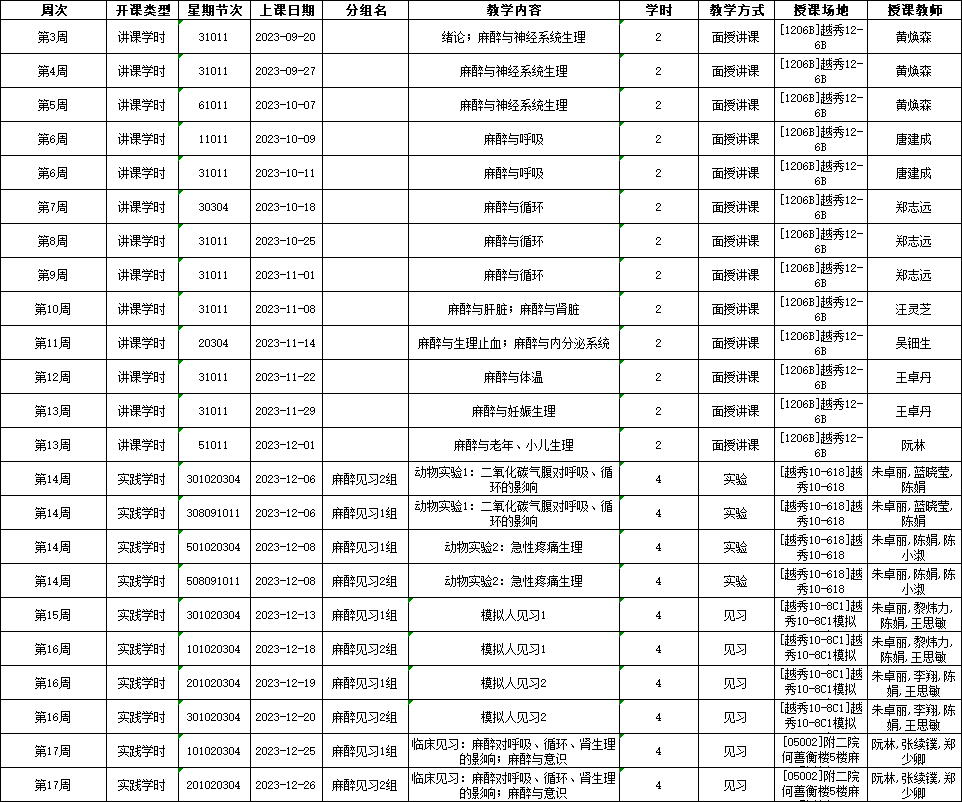 • 11.2 12.1课后完成复习:微课-麻醉与老年、麻醉与小儿