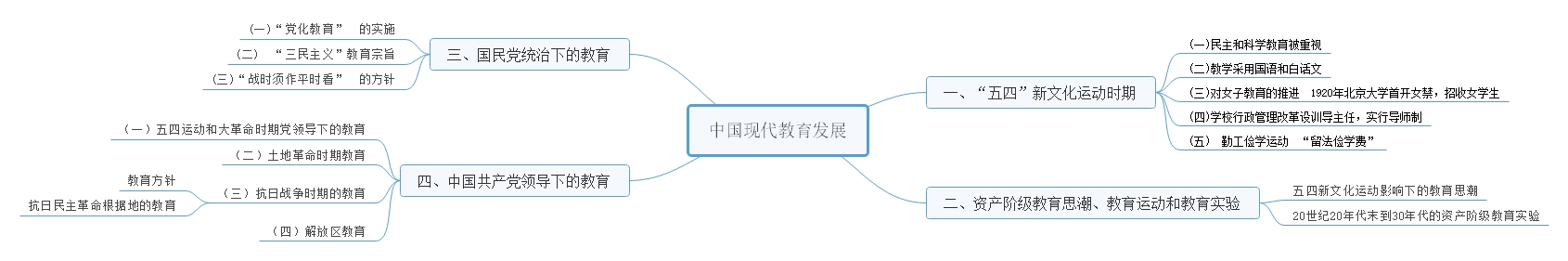 了解“五四”新文化运动时期的教育改革与发展;理解资产阶级教育思潮、教育运动和教育实验
