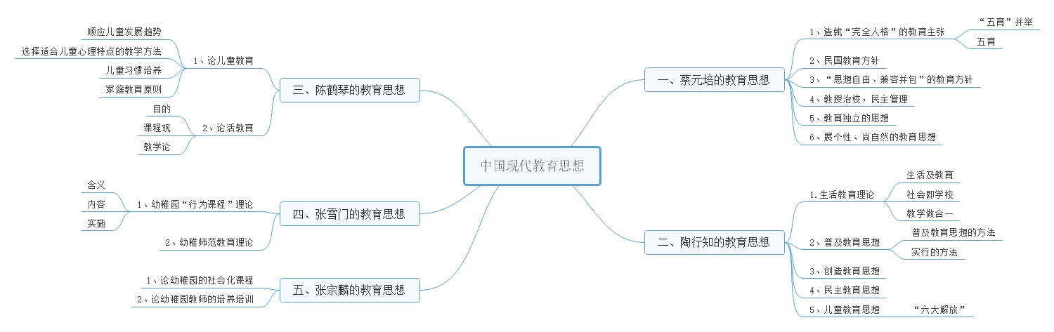 掌握蔡元培、陶行知、陈鹤琴、张雪门、张宗麟的教育思想