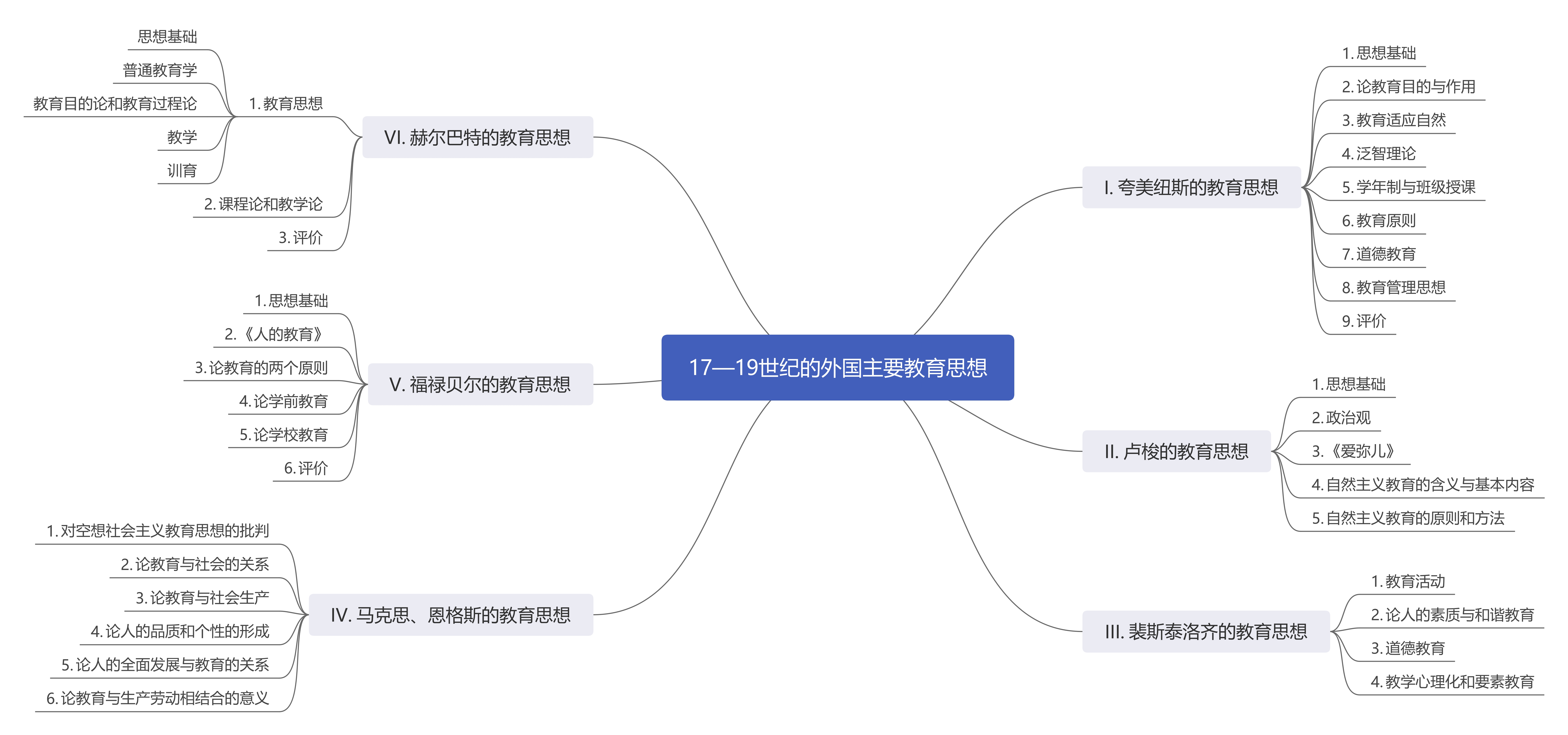 掌握17-19世纪外国主要教育家的教育思想,特别是卢梭、赫尔巴特、裴斯泰洛齐的教育思想