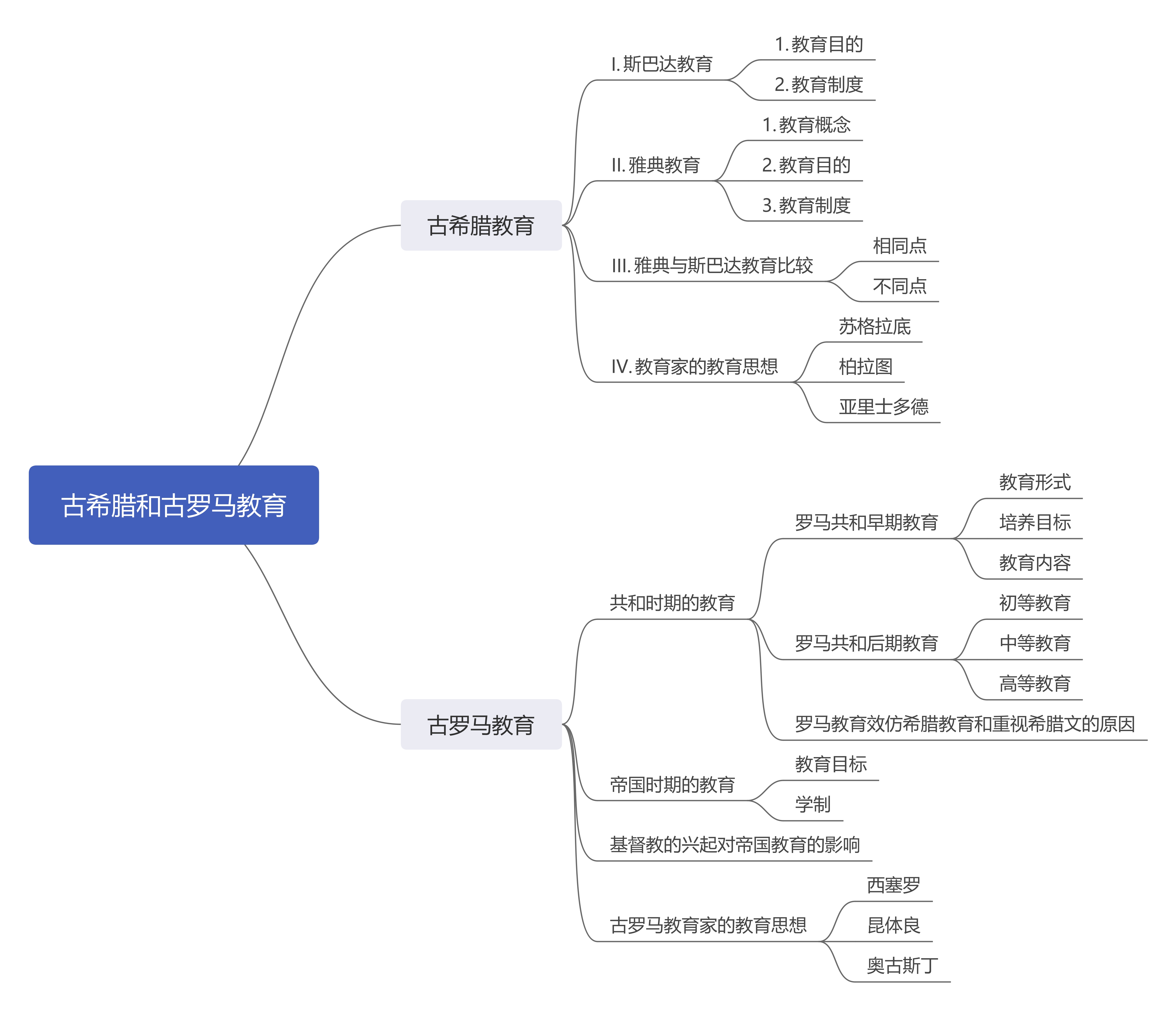 了解古希腊和古罗马、中世纪和文艺复兴时期的教育,掌握古希腊和古罗马时期教育家的教育思想