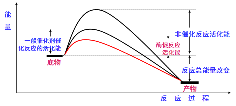 酶能更有效地降低反应活化能,比一般催化剂高约10的7次方~10的13次方倍。